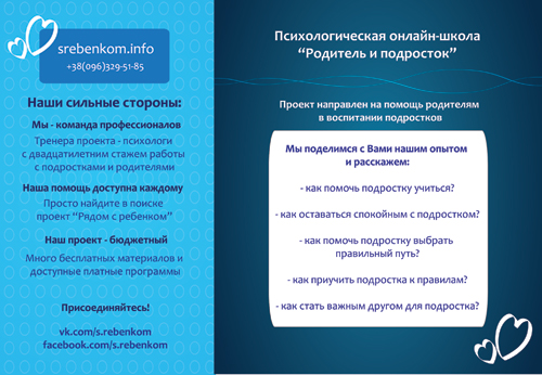 Персональный проект Инны Кирилюк и Лизы Молостовой Психологическая Он-лайн школа «Родитель и подросток»